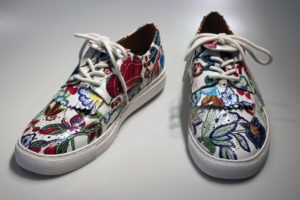 牛革と羊革。シンプルで個性的なウィングチップ型スニーカーの新作がたくさん。フラワープリントを履けば注目のまとだし、コンビはスーツにも合う。銀は型押し、金はグロッシー、ソールは白とカムフラージュ、珍しいコルクもあり。各タイプ展開中。Price:¥22,000(税抜)